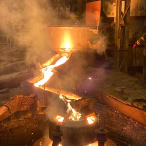 En cuanto a capacidad instalada, contamos con dos hornos de cubilote de alto rendimiento: uno con capacidad de 7.000 kg/h y otro de 2.000 kg/h. Además, disponemos de un horno de inducción con capacidad de 1.500 kg, lo que nos permite atender tanto producciones medianas como piezas unitarias o especiales que requieren máxima precisión en sus propiedades técnicas.